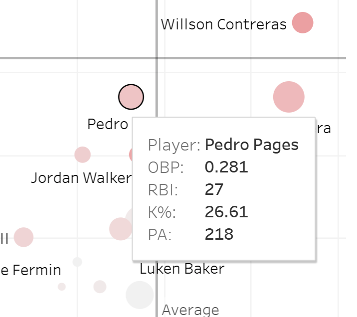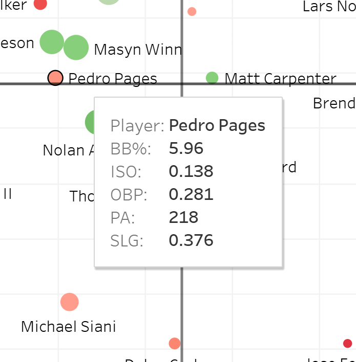 This dashboard evaluates player value for the 2024 St. Louis Cardinals by comparing their ability to get on base and drive in runs, which are two of the most impactful contributions to team success.